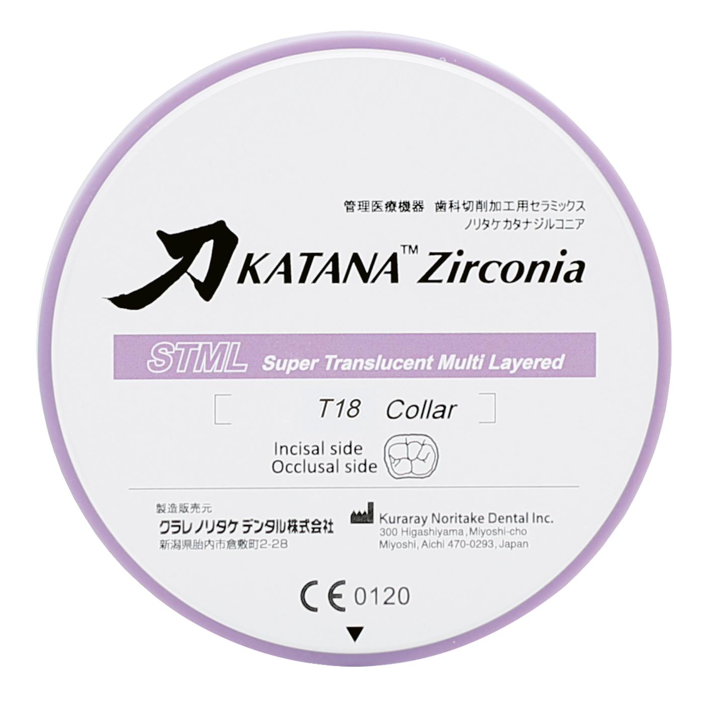 Kuraray Katana Zirconia STML CAD/CAM-Rohling, ø 98,5 x 18 mm, A3.5
